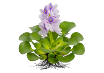 four leaf clover, a set of green water hyacinth plant pattern on a transparent background, A Detailed Study of Water Hyacinth  Leaf Arrangements and Growth Patterns on a png Background