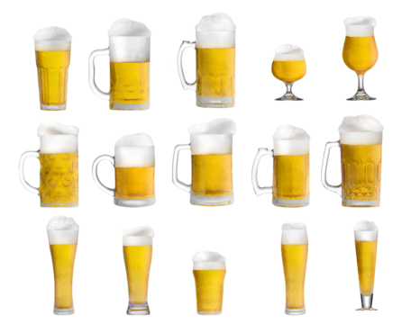 beer in Glass mug with foam with Water drops dew easy to use photo editing element PNG Format