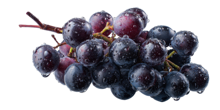 Bunch of Fresh Grapes With Water Droplets on Transparent Background