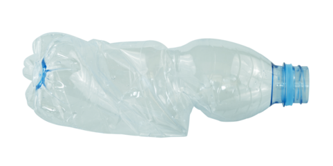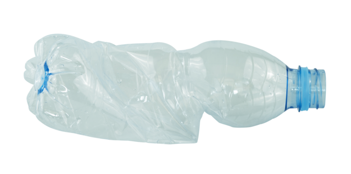 Crumpled mineral water plastic bottle isolated on transparent background