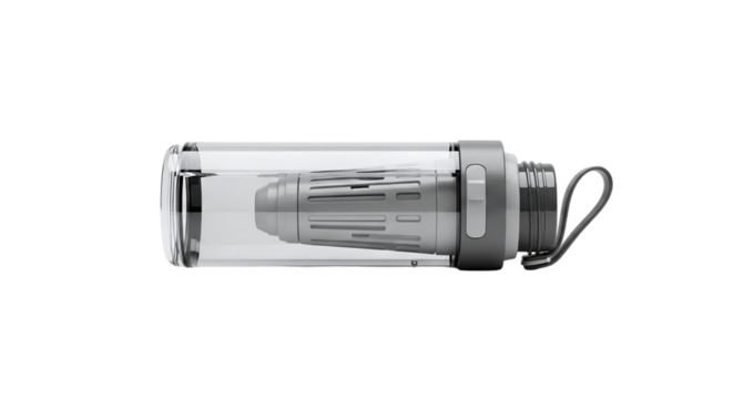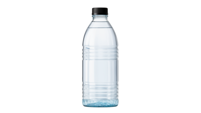 Clear plastic water bottle with filter isolated on transparent background