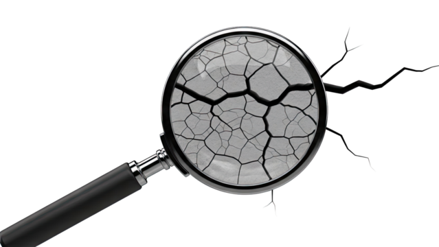 Magnifying glass examining cracked earth