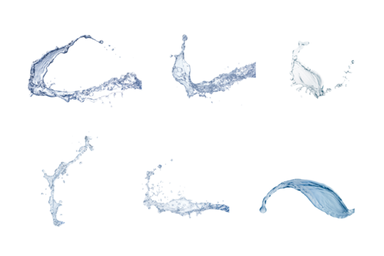 A dynamic splash of clear water on a transparent background, showcasing natural movement and fluid elegance.