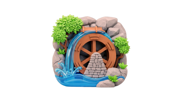 Intricate Wooden Water Wheel Rustic Charm Detailed Craftsmanship Isolated on White Background