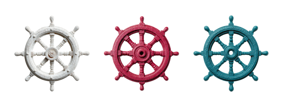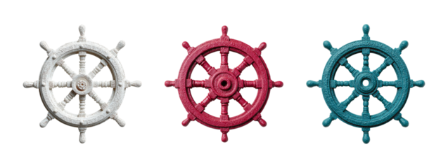 Colorful Nautical Steering Wheels Set Isolated on Transparent Background