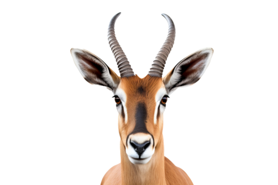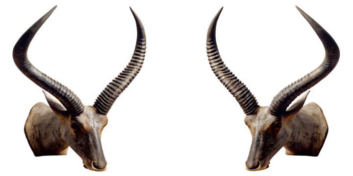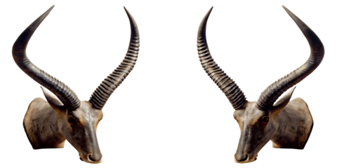 Gazelle heads spiral horns isolated on a transparent background