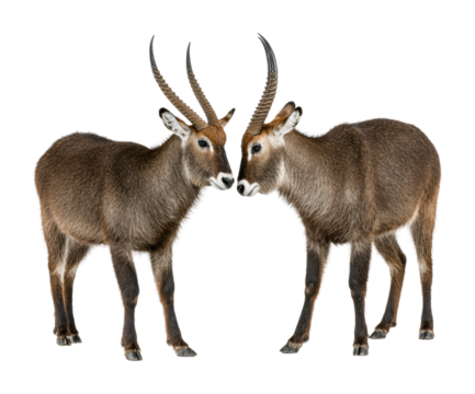 Waterbuck antelopes interacting in nature wildlife isolated on transparent background