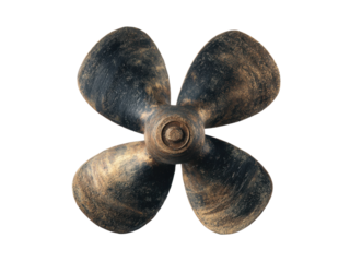 Weathered bronze four bladed marine propeller boat, Isolated, Png Transparent Background