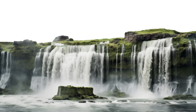 Flowing waterfall cascading over rocks natural peaceful environment isolated on transparent background, png