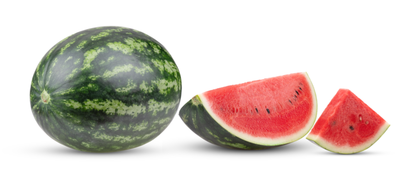 Fresh watermelon slices for summer refreshment and enjoyment on a transparent background, cut out