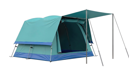 Teal and Blue Camping Tent with Awning
