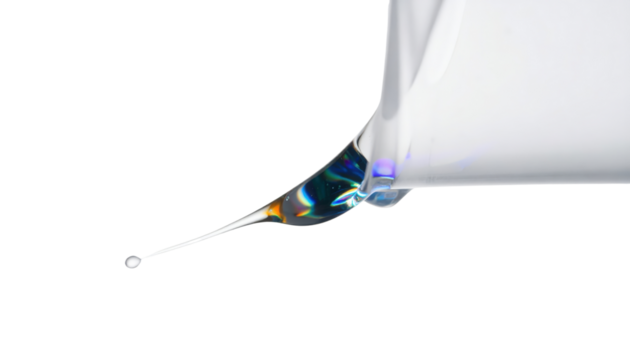 Water Dripping from a Tilted Glass Closeup Liquid Motion.