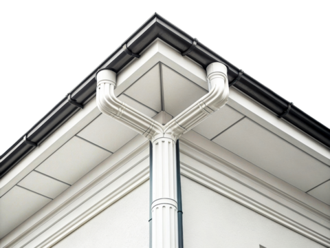 Modern Eaves Drainage System: A close-up shot highlighting the sleek design of a modern eaves drainage system, a testament to contemporary building innovation.
