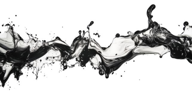 Black and white liquid splashing and mixing on transparent background. Transparent background