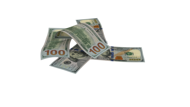 Curved hundred dollar banknote, isolated on transparent cutout background