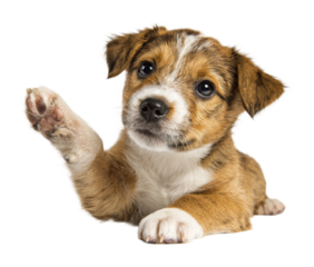 Playful puppy waving paw cute pet isolated on transparent background