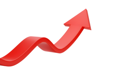 Vibrant red arrow indicator showing growth isolated on transparent background
