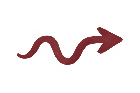 Red wavy arrow pointing right, showing change, uncertainty, or a winding path. Transparent background