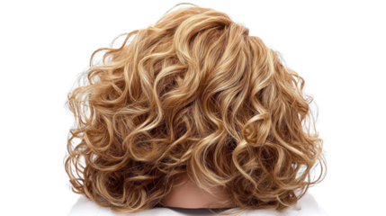 Curly blonde wig, sophisticated and trendy, isolated as a women's hairdesign on white.