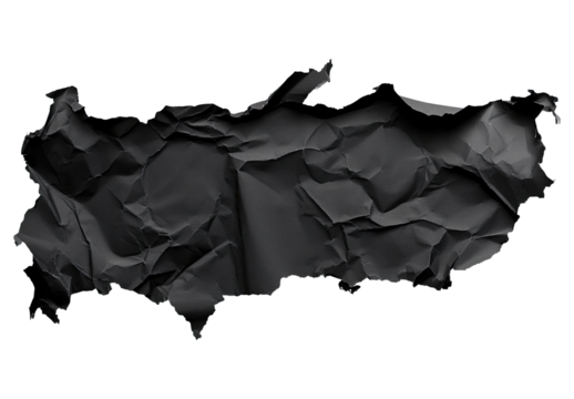Crinkled black paper, roughly shaped like a country, on a black background
