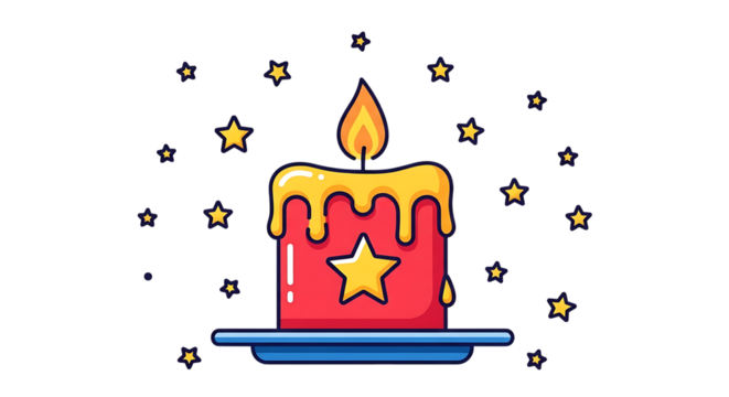 Minimalist flat design candle with flame on transparent background