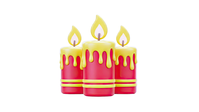 Three festive candles with dripping wax and flames
