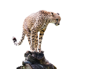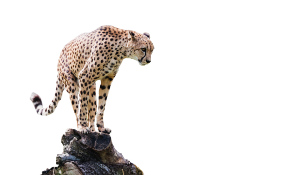 Cheetah luring ready to attack isolated on transparent white background