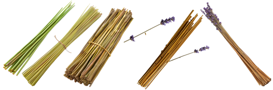 Various wooden incense sticks bundled together ready for spiritual practices and home fragrance on a white background