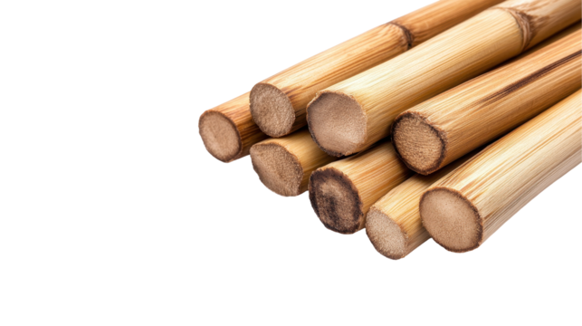 several weathered wooden sticks lying casually together isolated on transparent white background