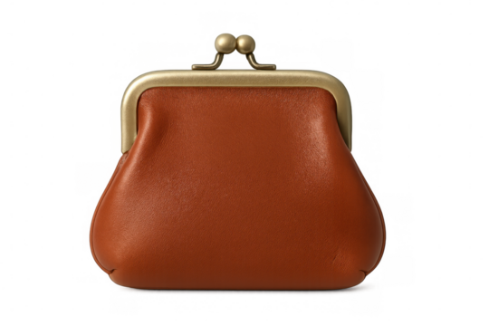 Brown leather wallet resting, highlighting precision stitching, transparent backdrop, perfect for financial and style imagery