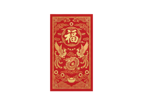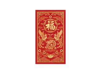 Traditional chinese new year red envelope with phoenix and dragon imagery