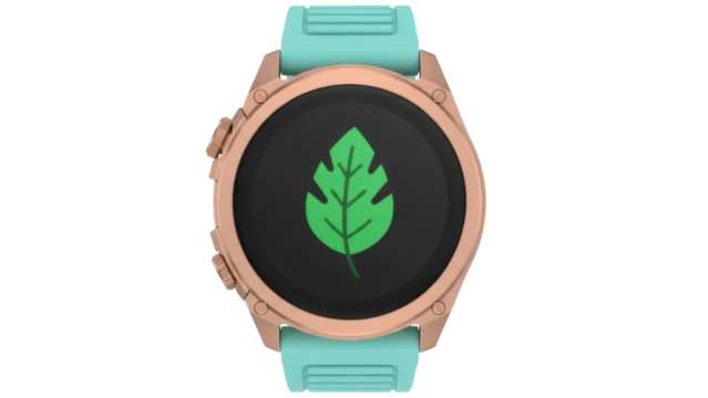 Isolated smartwatch wearable technology for sport fitness with leaf icon on black screen