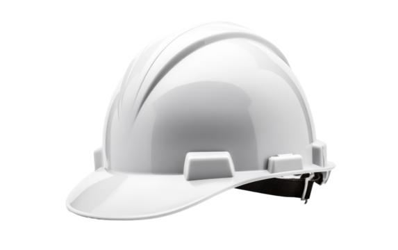 A white hard hat showcasing the protective headgear commonly worn in construction and industrial settings. The hard hat is sturdy and durable, designed to safeguard the wearer from potential hazards.