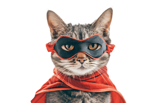 Transparent masked boy pretending to be a superhero with red and blue cape