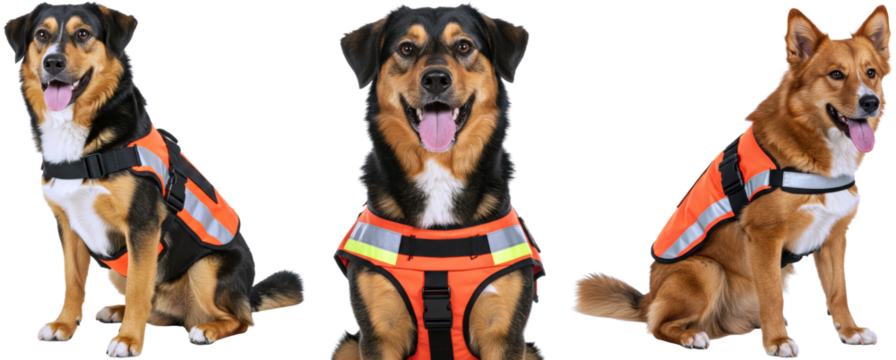 Three construction workers wearing safety vests and hard hats isolated on a transparent background male