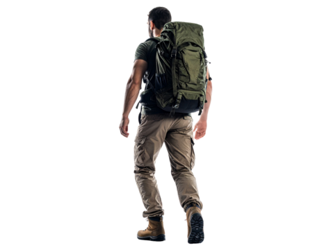 A person wearing a backpack and hiking boots