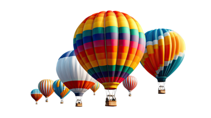Colorful hot air balloon floating in the sky isolated on transparent background