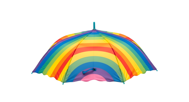 Rainbow Umbrella with Colorful Stripes and Handle.