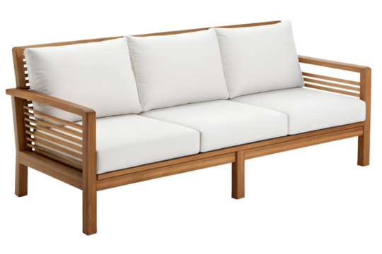Modern Teak Wood 3-Seater Outdoor Patio Sofa with White Cushions