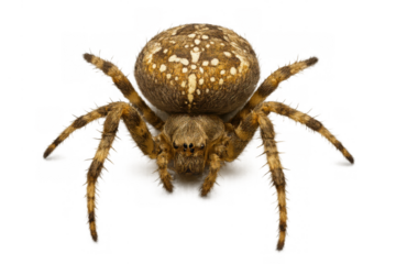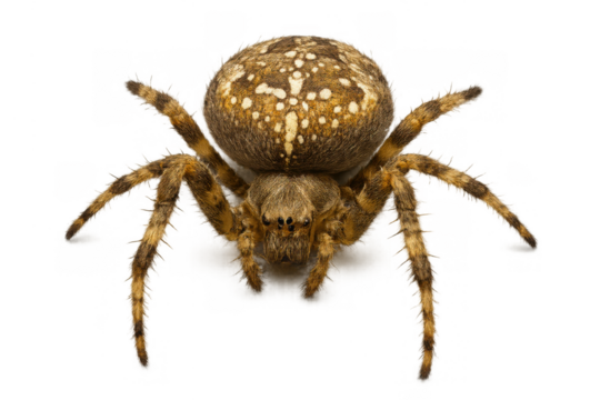 European garden orb weaver spider on transparent background, macro view of the arachnid's intricate markings