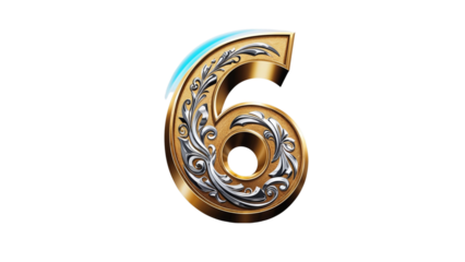 golden number 6 in transparent background