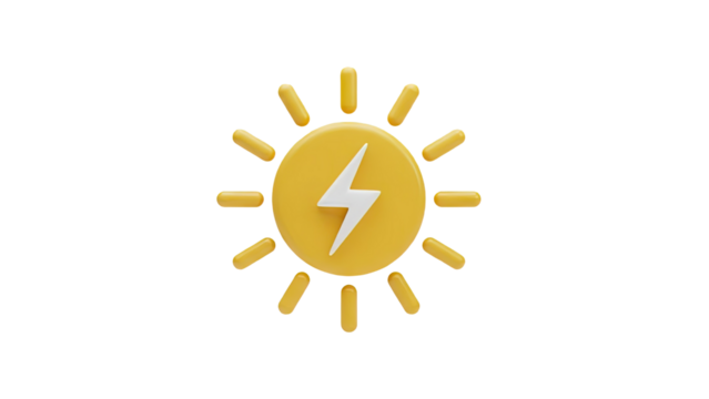 3D Sun Icon with Lightning Bolt - Renewable Energy Symbol
