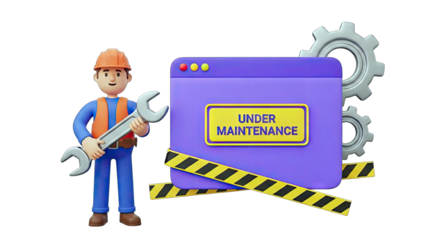 3D Worker Holding Wrench Fixing Under Maintenance Website