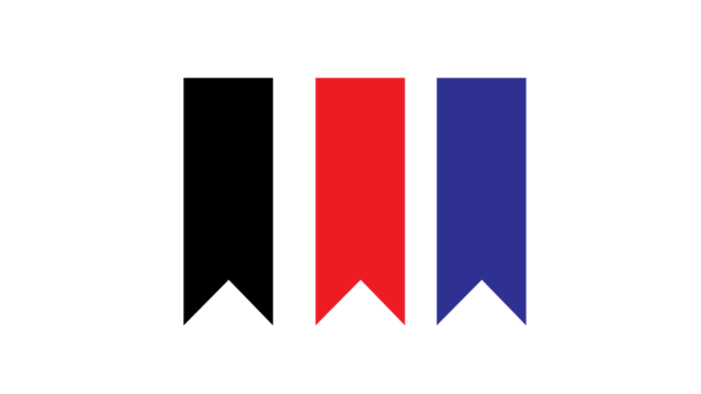Set of three vertical ribbon banners in black, red, and blue colors for graphic design and web navigation