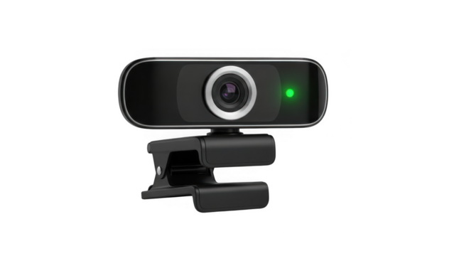 High definition webcam with green indicator light for clear video conferencing and streaming isolated on transparent background