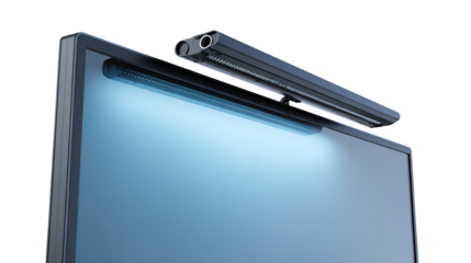 Modern computer webcam mounted on top of a screen isolated on transparent background