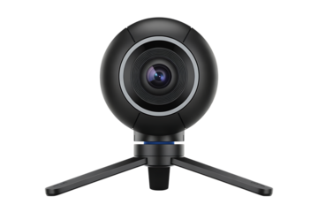 Professional black webcam with sharp image quality and versatile mounting options for modern communication isolated on transparent background