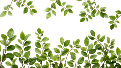 Lush Green Sprigs and Leaves on Transparent Background - Natural Frame for Design