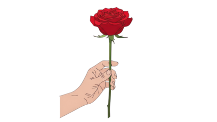 Hand holding single red rose stem illustration isolated PNG with Transparent Background