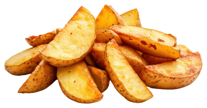 Crispy golden potato wedges on a transparent background